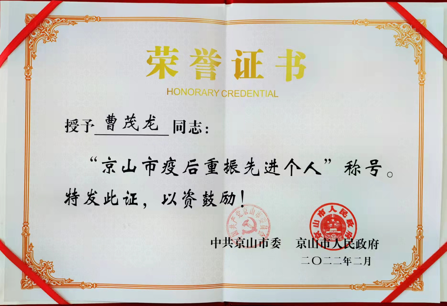 公司總經(jīng)理曹茂龍獲京山市疫后重振先進個人稱號