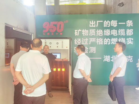 許廳長一行參觀了公司展廳、燃燒實驗室、礦物質(zhì)電纜生產(chǎn)線,京山市科經(jīng)局向祥輝局長陪同考察!