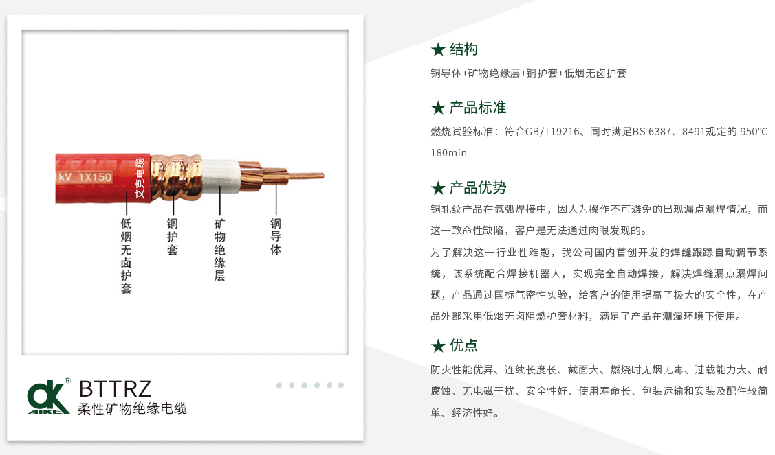 柔性礦物絕緣防火電纜BTTRZ: